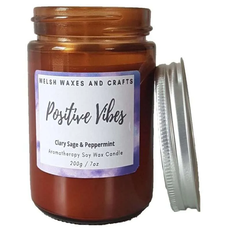 Positive Vibes Aromatherapy Soy Candle with Clary Sage & Peppermint 200g