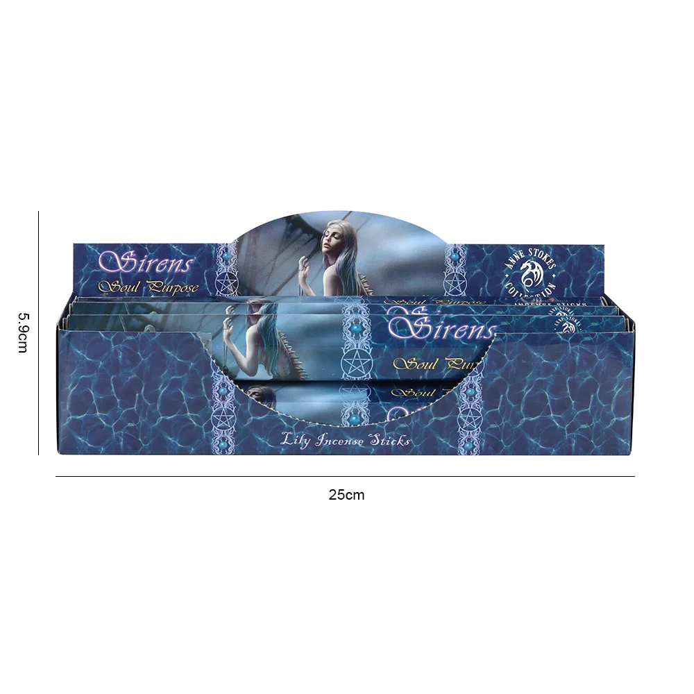 This box includes 6 packs of Anne Stokes Sirens incense in the fragrance ‘Soul Purpose’ (lily). Each individual pack contains 20 incense sticks. Product Dimensions: H2.5cm x W24.5cm x D3cm Packaged Dimensions: H5.5cm x W25cm x D9cm