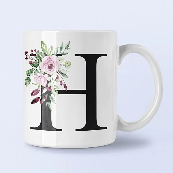 Initial Mug, Floral Initial Mug, Can Be Personalised