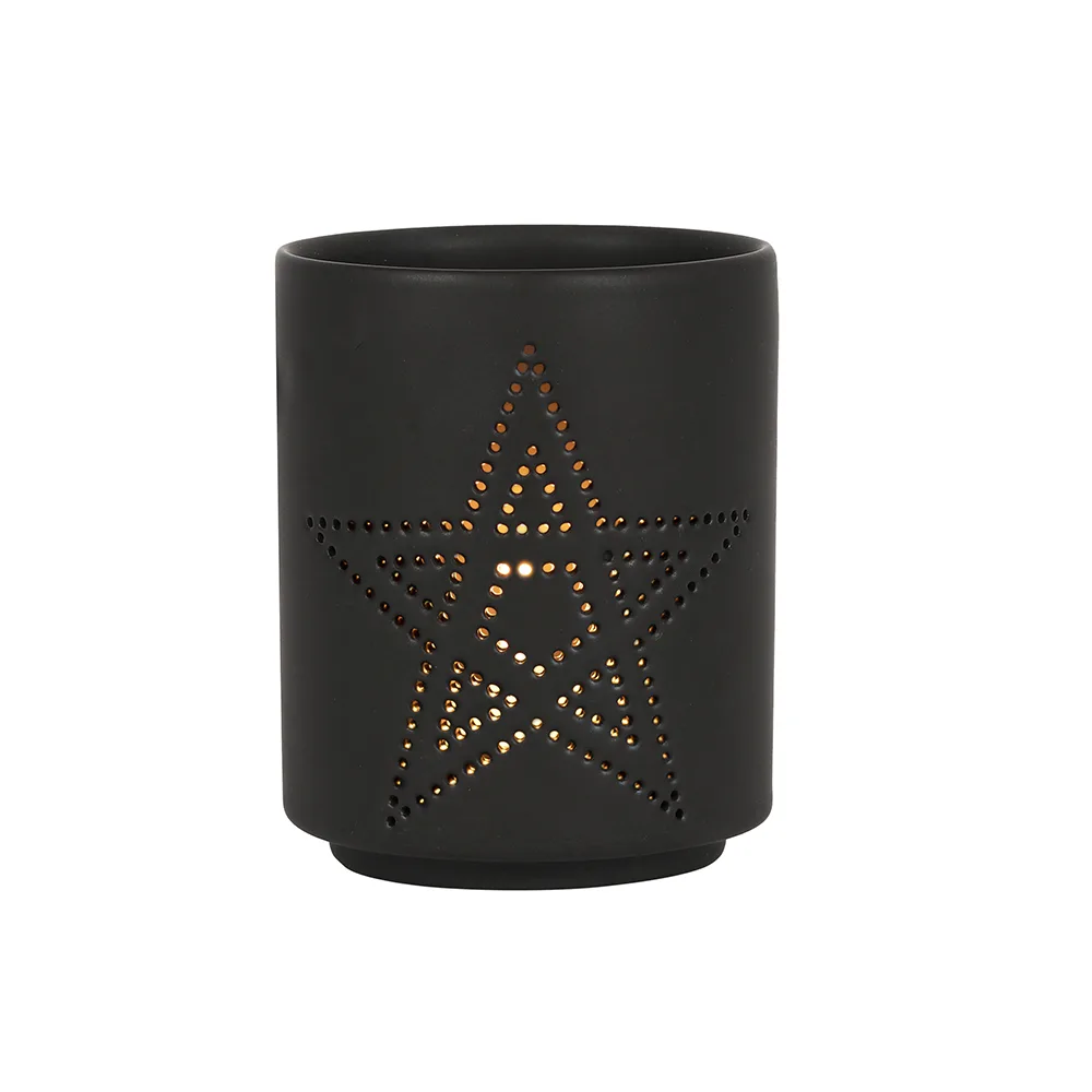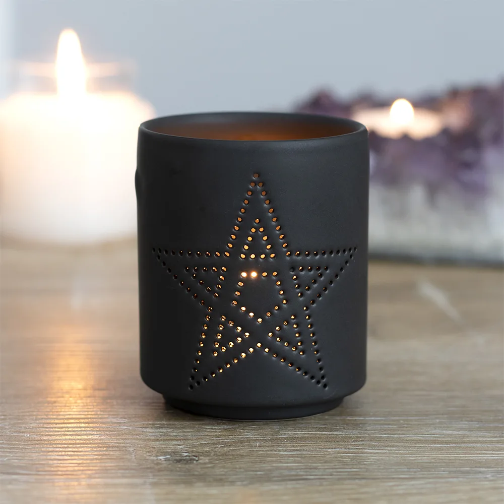 Small Black Pentagram Cut Out Tealight Holder