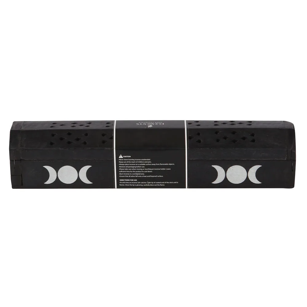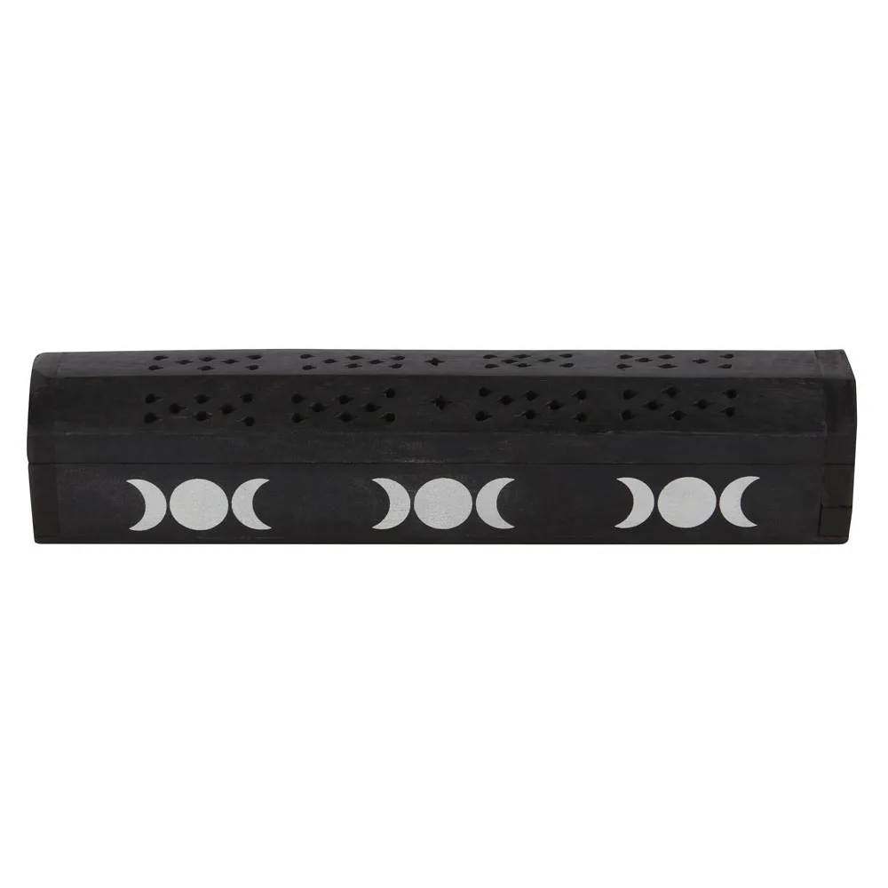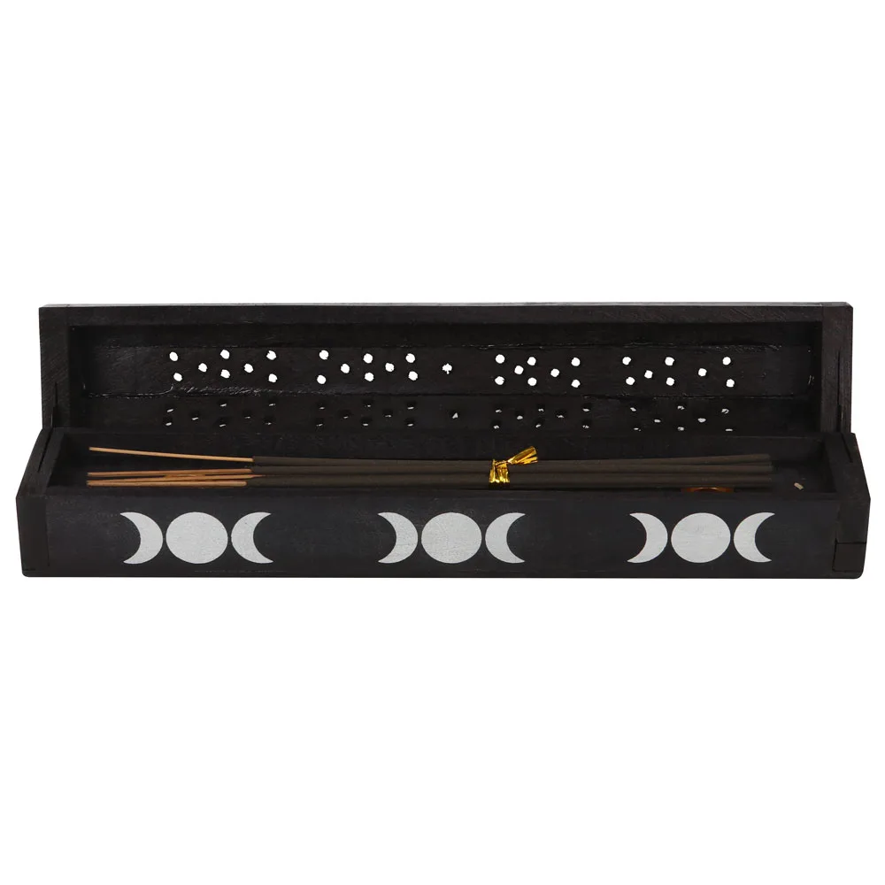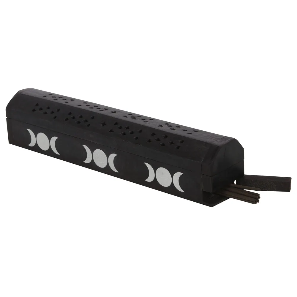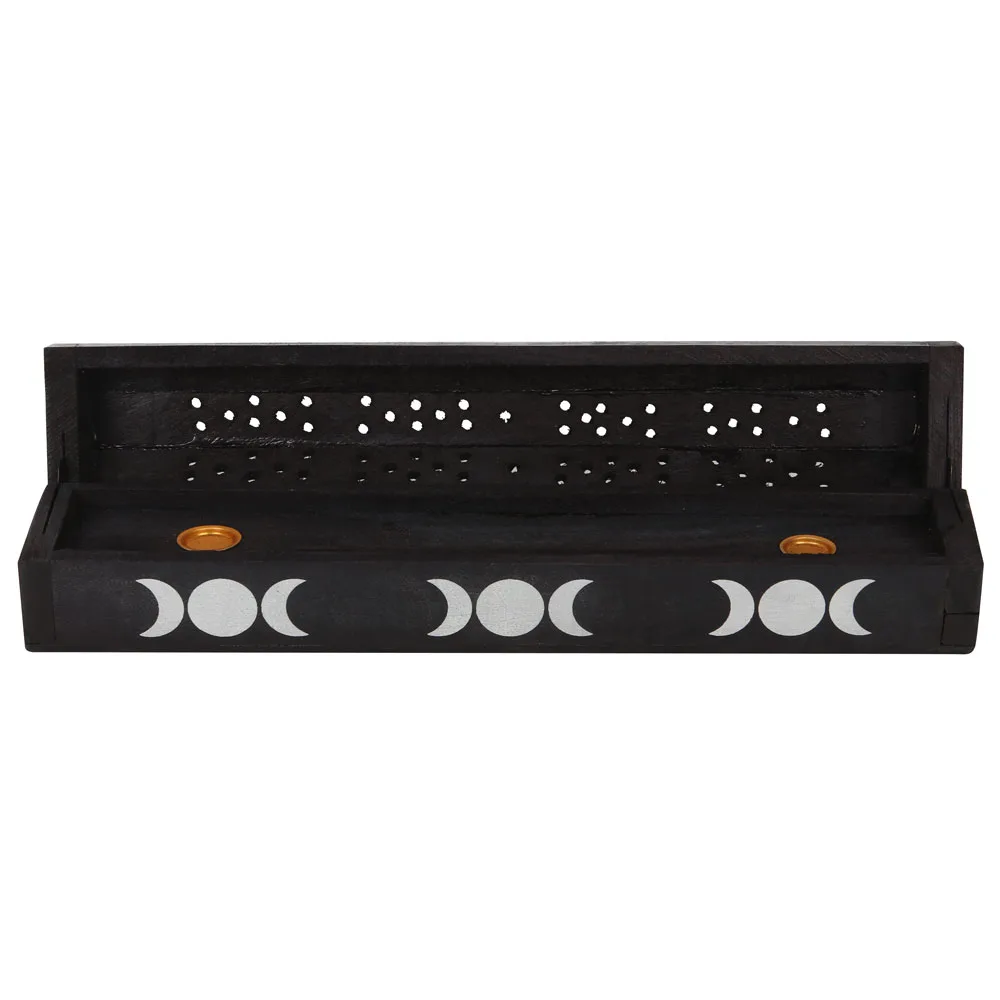 Printed with white triple moons, this box doubles as both an incense holder and storage.